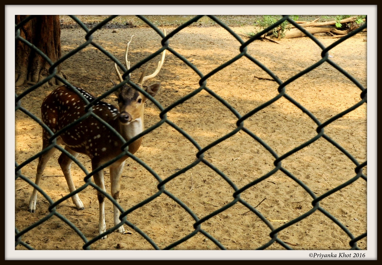 The peacock chase had left us quite breathless. But we did not give up in our search for the deer that the park houses. Without a telephoto lens in my kit, I faced the handicap of not getting any good shots of the deer locking horns. However, the close up of this buck made me happy :)